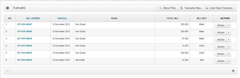 Untuk melihat list data transaksi, klik menu Lihat Data Transaksi