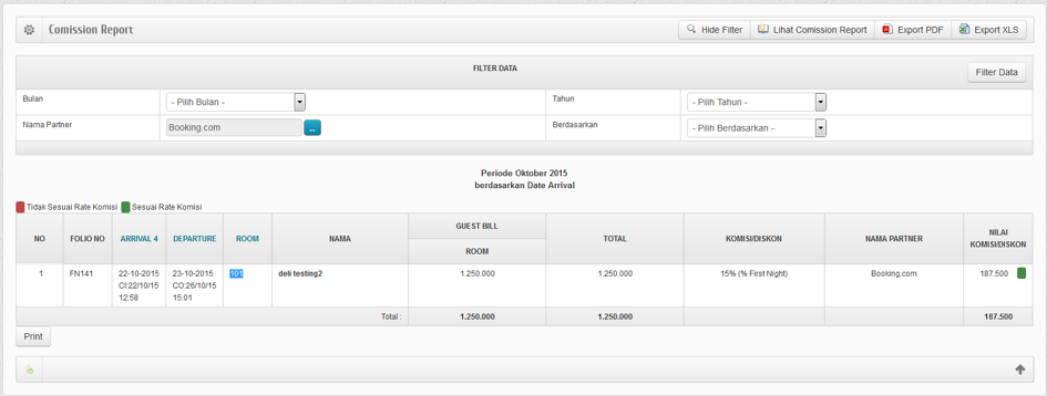 Comission Report Comission Report Merupakan halaman yang berisi laporan komisi. Misalnya tamu yang Checkin melalui Booking.com. Maka data transaksi akan masuk pada halaman Comission Report. Apakah artikel ini membantu? Ya : 677 | Tidak : 791