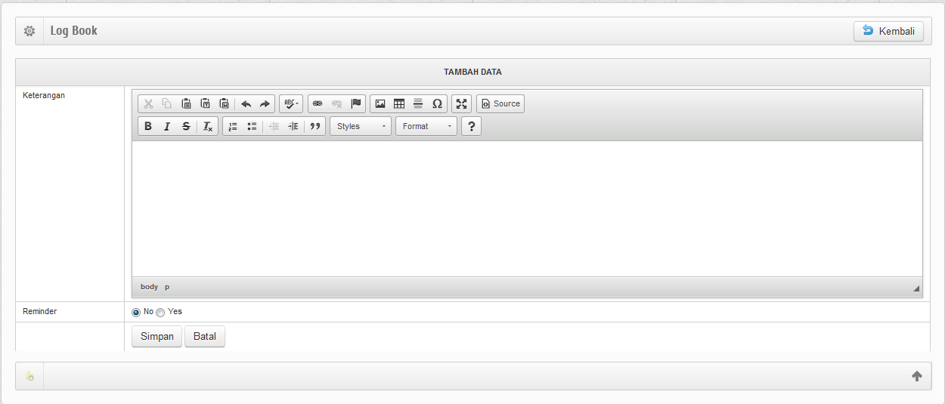 - Silahkan klik button Simpan untuk menyimpan Log.