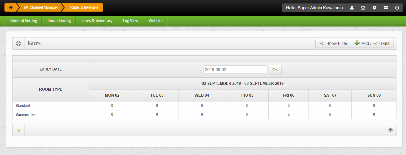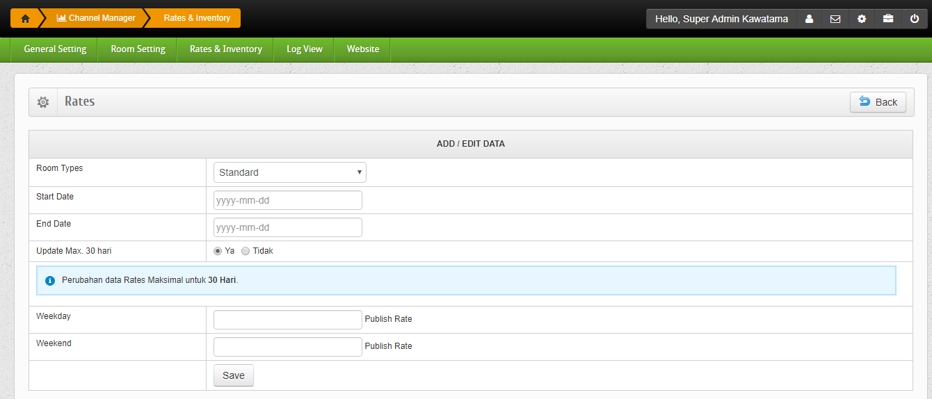 Halaman ini berfungsi untuk menentukkan harga kamar yang akan ditampilkan di channel manager.